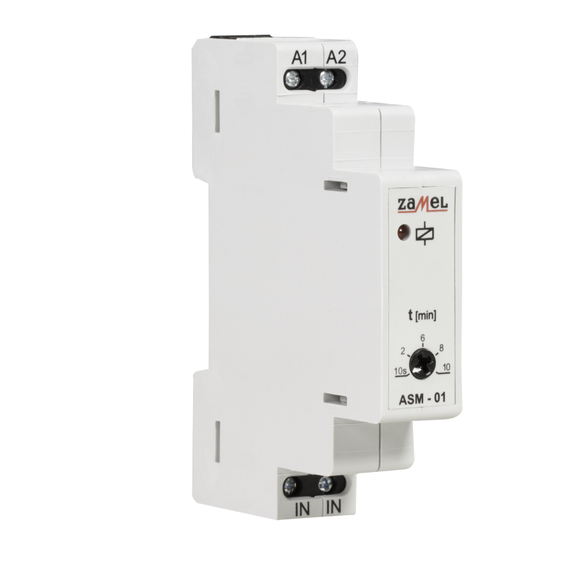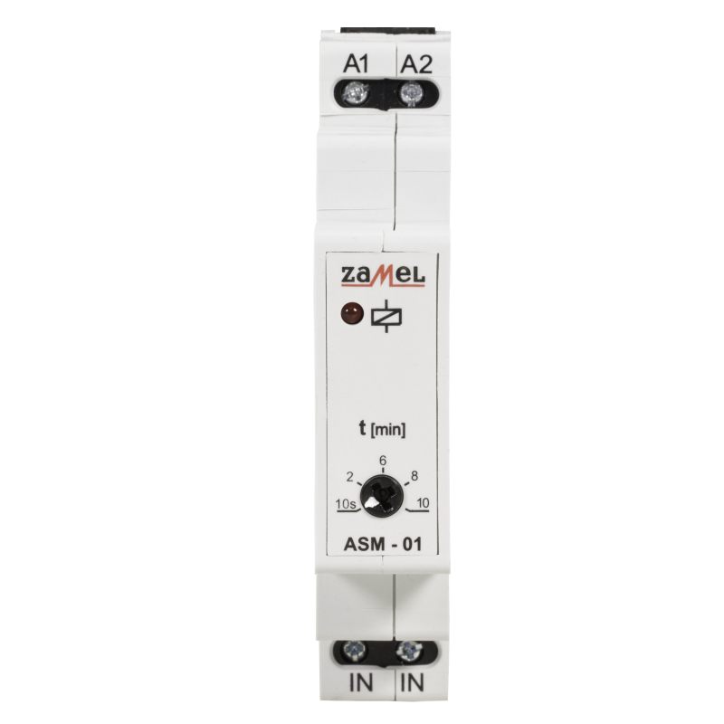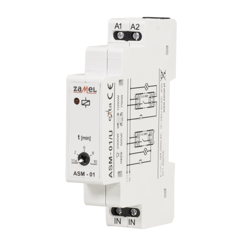 Automat schodowy firmy Zamel. Jest on przeznaczony do sterowania oświetleniem na korytarzach, klatkach schodowych cz innych obiektów. Automat utrzymuje włączone oświetlenie przez określony czas. Po jego upływie oświetlenie zostanie automatyczne wyłączone. Czas może być płynnie regulowany w zakresie od 10 sekund do 10 minut za pomocą potencjometru, który znajduje się na panelu czołowym automatu. Automat został wykonany z materiałów najwyższej jakości, dlatego jest on trwały i zapewnia długi okres eksploatacji.
