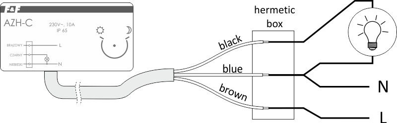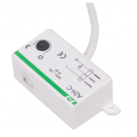 Włącznik zmierzchowy umieścić w miejscu o stałym dostępie naturalnego światła dziennego, które zmianami swej intensywności będzie powodować załączanie i wyłączanie oświetlenia. Pora załączenia oświetlenia może być ustawiona przez użytkownika potencjometrem. Obrót w stronę “księżyca“ - załączy później, obrót w stronę “słoneczka“ - załączy wcześniej. Włącznik zmierzchowy AZH-C posiada układ opóźniający załączenie i wyłączenie oświetlenia, niwelując w ten sposób wpływ zakłóceń (np. wyładowań atmosferycznych) na pracę automatu.