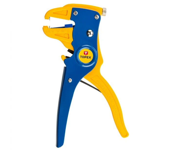 Automatyczny ściągacz izolacji o długości 175 mm marki Topex. Zakres pracy ściągacza wynosi od 0,5 do 6 mm². Posiada regulację zakresu i siły nacisku. Rękojeść ściągacza jest ergonomiczna, dlatego dobrze leży w dłoni, co podnosi komfort pracy. Ściągacz został wyposażony dodatkowo w obcinak, dzięki któremu możliwe jest przecinanie kabli. Produkt ten doskonale nada się do majsterkowiczów.