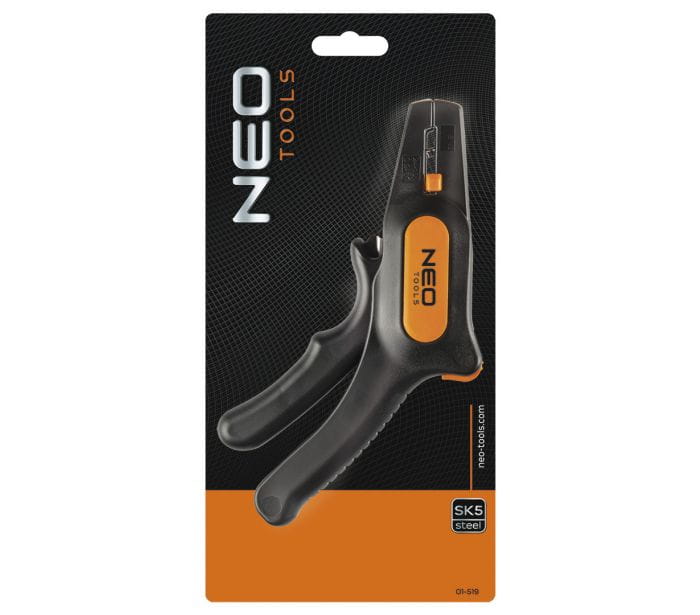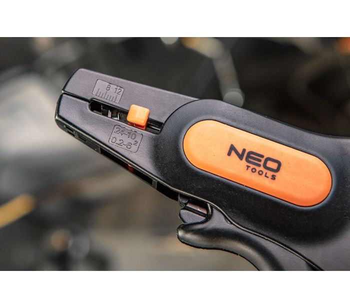 Automatyczny ściągacz izolacji NEO marki Neo Tools do przewodów o przekroju 0,5 - 6 mm² (24-10 AWG). Ściągacz izolacji posiada regulację długości ściągania izolacji od 5 do 12 mm. Korpus z blokadą spustu i jest bardzo wytrzymały, został wykonany z włókna szklanego wzmocnionego nylonem. Szczęki ściągacza zostały wykonane z wysokogatunkowej stali stopowej SK5 i gwarantują trwałość i ostrość ściągacza.