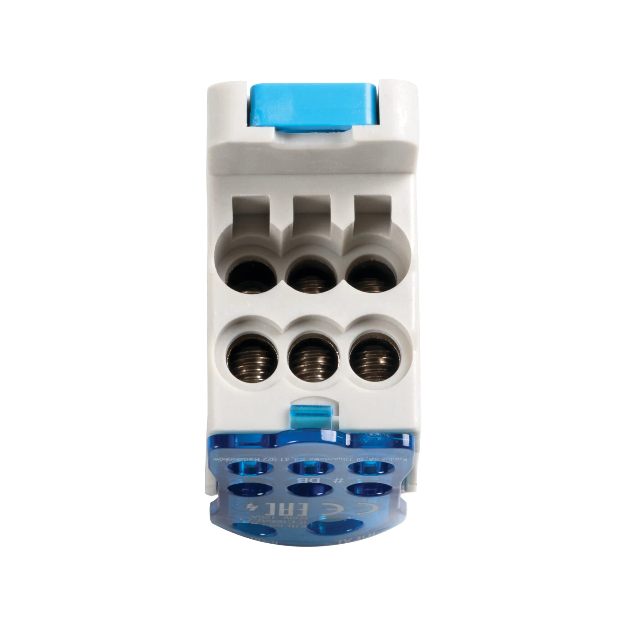 Blok łączeniowy zaciskowy służy do rozdziału zasilania, dostosowany do końcówek kablowych.