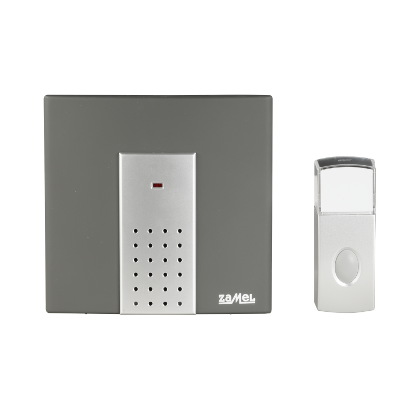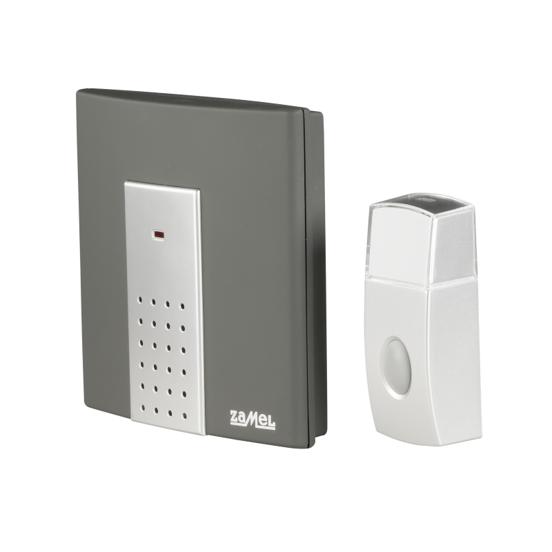 Bezprzewodowy bateryjny dzwonek hermetyczny o zasięgu 100 metrów w kolorze srebrno-grafitowym firmy Zamel. Został wykonany z wysokiej jakości materiału oraz świetnie się prezentuje dzięki nowoczesnemu designowi. Dzwonek ten doskonale sprawdzi się jako dzwonek do drzwi, wewnętrzne urządzenie przywoławcze czy alarm osobisty. Nie wymaga on instalacji dzwonkowej. W skład zestawu ST-230 wchodzi bezprzewodowy dzwonek Sattino oraz dzwonkowy przycisk ST-300P.