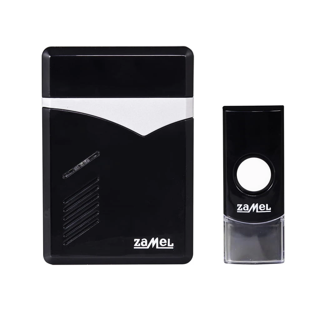 Bezprzewodowy bateryjny dzwonek o zasięgu 100 metrów w kolorze czarno-srebrnym firmy Zamel. Pochodzi z serii Technno i jest doskonałym rozwiązaniem dla gospodarstw domowych, mieszkań, restauracji czy hoteli. Dzwonek idealnie sprawdzi się jako dzwonek do drzwi, czy wewnętrzne urządzenie przywoławcze lub prosty alarm. Nie wymaga on instalacji dzwonkowej, a optyczna sygnalizacja dzwonienia, w którą został wyposażony, może być przydatna np. dla osób słabo słyszących.
