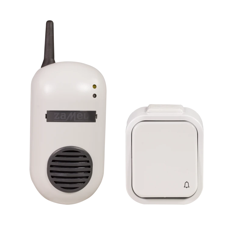 Bezprzewodowy dzwonek Bulik o zasięgu 150 metrów firmy Zamel. Dzwonek ten jest doskonałym rozwiązaniem dla gospodarstw domowych, mieszkań, hoteli czy restauracji. Idealnie sprawdzi się jako dzwonek do drzwi w domu, hotelu lub jako wewnętrzne urządzenie przywoławcze. Nie wymaga on instalacji dzwonkowej, ponieważ jest włączany bezpośrednio do gniazda sieci 230V. W skład zestawu DRS-982H wchodzi bezprzewodowy dzwonek Bulik DRS-982 oraz bezprzewodowy przycisk hermetyczny PDH-991.