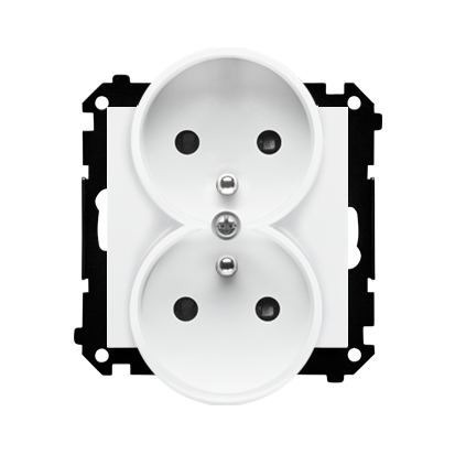 Gniazdo wtyczkowe podwójne z uziemieniem z przesłonami (moduł) 16A, 250V, szybkozłącza; Biały mat
