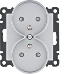 Podwójne gniazdo zasilające z uziemieniem w kolorze srebrnym firmy Hager. Gniazdo zostało dodatkowo wyposażone w przesłonę styków. Pochodzi z serii Lumina Intense i jest przeznaczone do montażu z produktami serii Lumina. Idealnie sprawdzi się w większości nowoczesnych wnętrz. Seria Lumina cechuje się estetycznym wyglądem, wysokim standardem wykończenia oraz atrakcyjną ceną. Seria ta jest doskonałym wyborem dla osób, które oczekują prostej formy pasującej do każdego wnętrza.