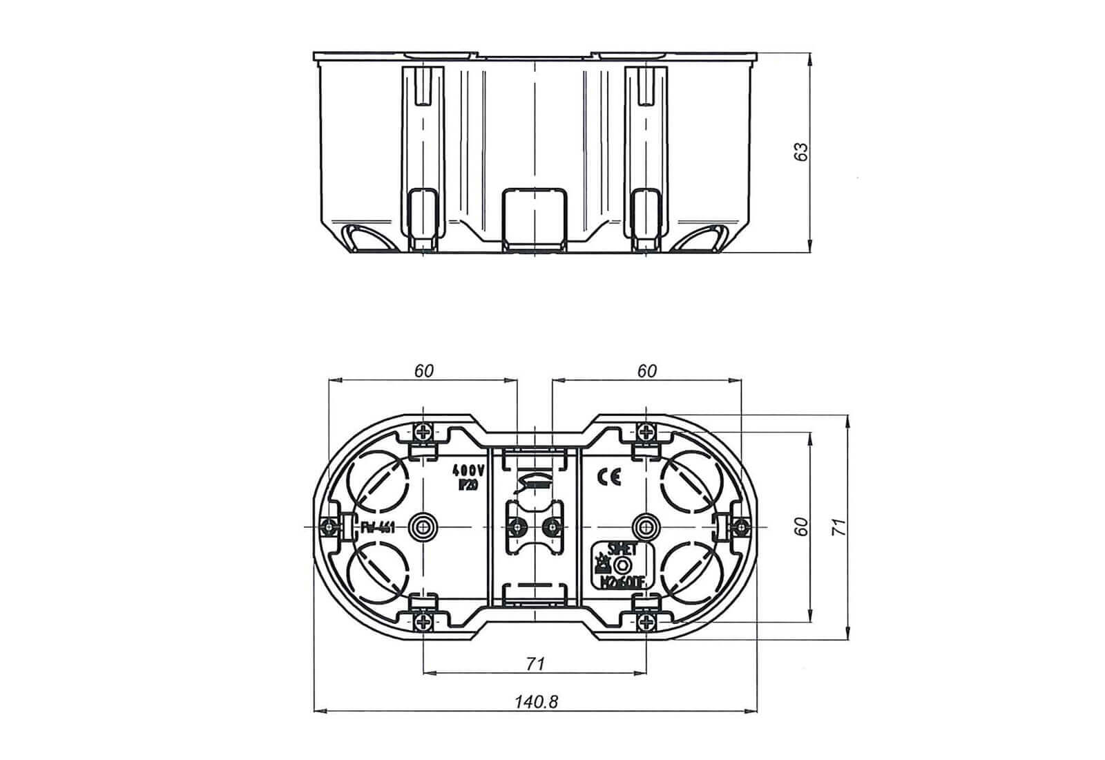 M2x60DF pomarańczowy Puszka podtynkowa dwupolowa 2x60mm, głęboka, MultiwallSlim