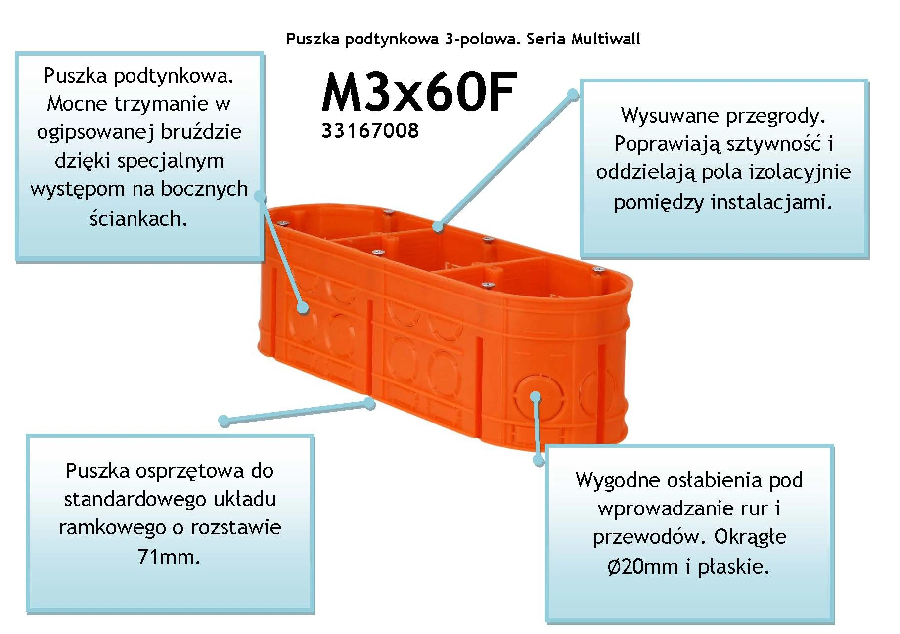 M3x60F pomarańczowy Puszka podtynkowa 3 x 60 mm, głęboka, MULTIWALL
