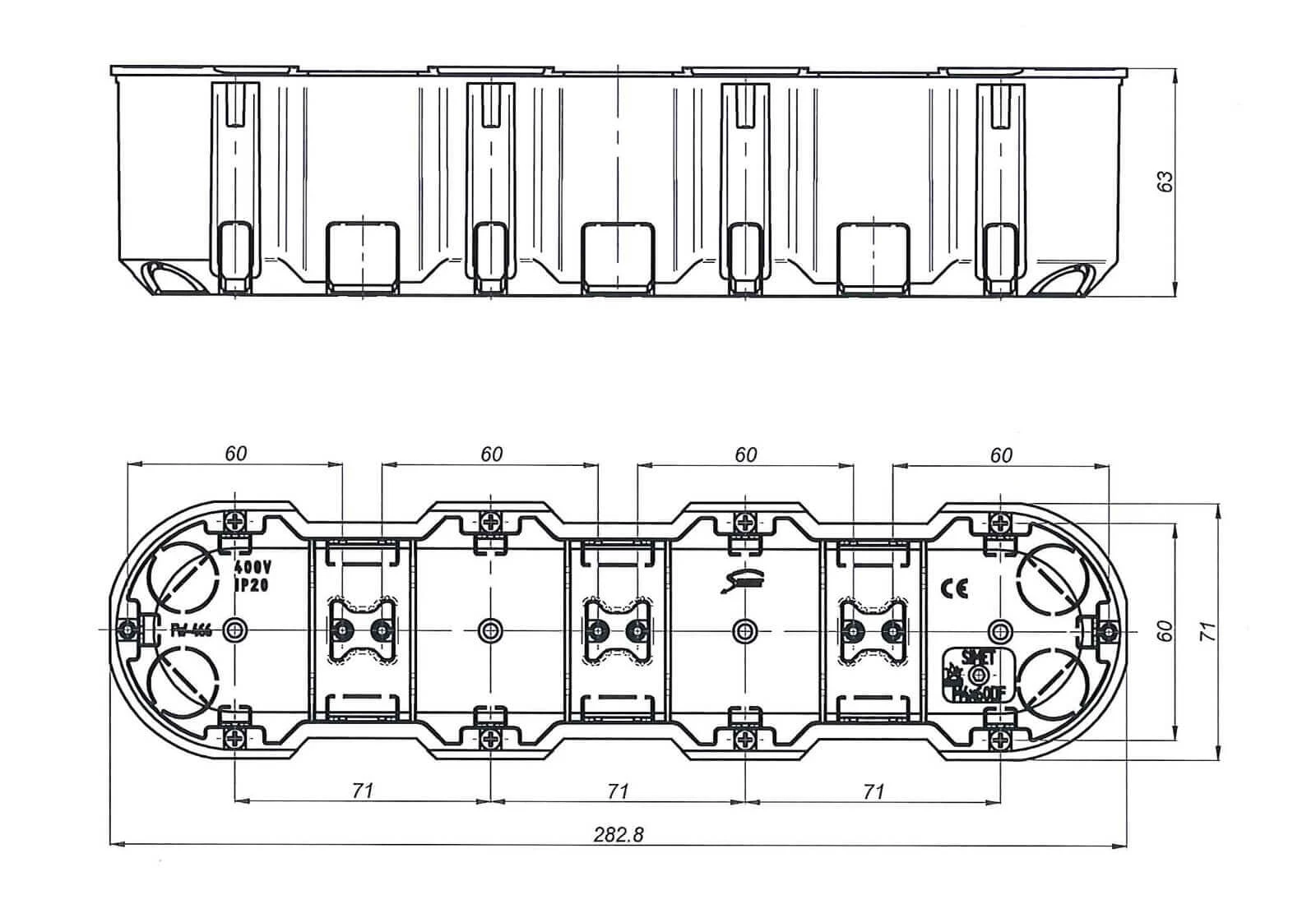 M4x60DF pomarańczowy Puszka podtynkowa czteropolowa 4x60mm, głęboka, MultiwallSlim