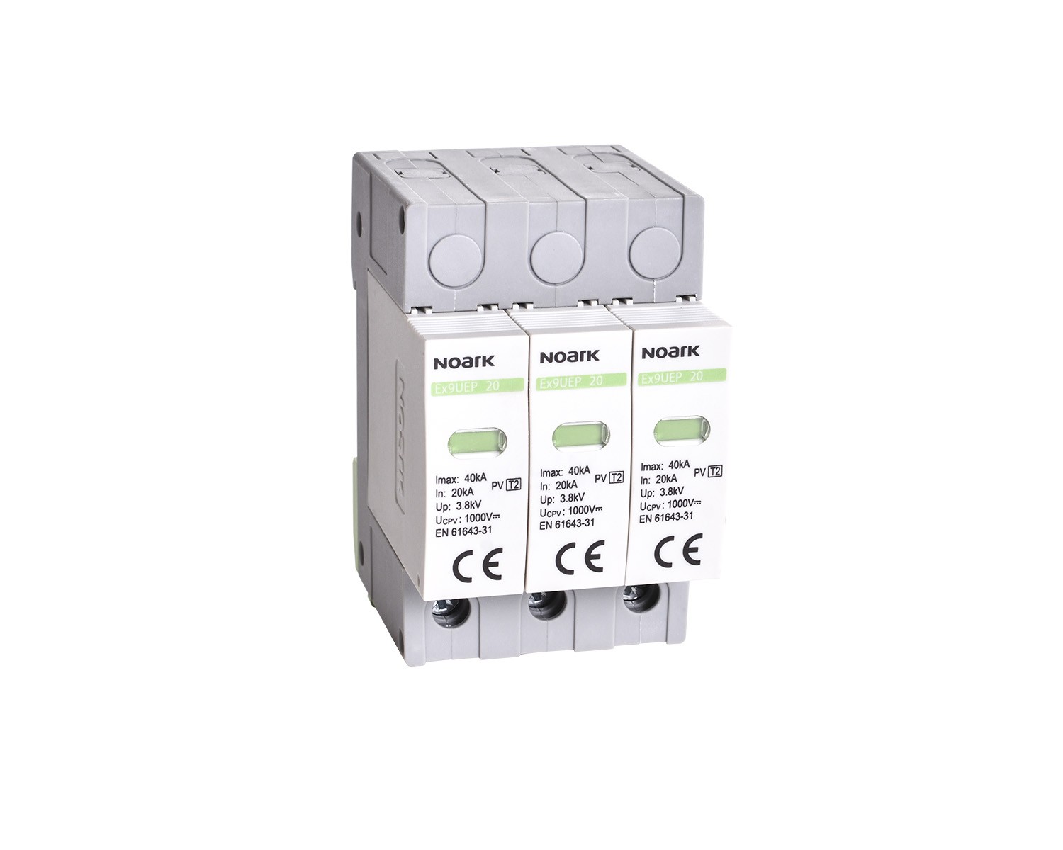 Ogranicznik przepięć fotowoltaiczny 3P 1000 V DC Typ II Ex9UEP firmy Noark to wysokiej jakości urządzenie ochronne przeznaczone do zabezpieczania instalacji fotowoltaicznych i obwodów prądu stałego przed skutkami przepięć oraz impulsów przejściowych. Ogranicznik został zaprojektowany zgodnie z normą EN 61643-31 i klasyfikowany jako ochronnik przepięć klasy PV T2, co gwarantuje skuteczną ochronę modułów i falowników przed gwałtownymi wzrostami napięcia spowodowanymi wyładowaniami atmosferycznymi lub zaburzeniami sieci.