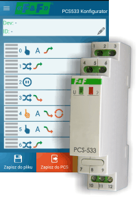 PCS-533 jest programowalnym przekaźnikiem czasowym, który umożliwia załączanie, wyłączanie i przełączanie przekaźnika w funkcji czasu oraz w funkcji sygnałów sterujących zadawanych przez dwa wejścia. Program tworzony jest przez użytkownika za pomocą dedykowanej, bezpłatnej aplikacji na smartfona z systemem Android. Wczytanie programu do przekaźnika odbywa się bezprzewodowo za pośrednictwem systemu komunikacji bezprzewodowej NFC.