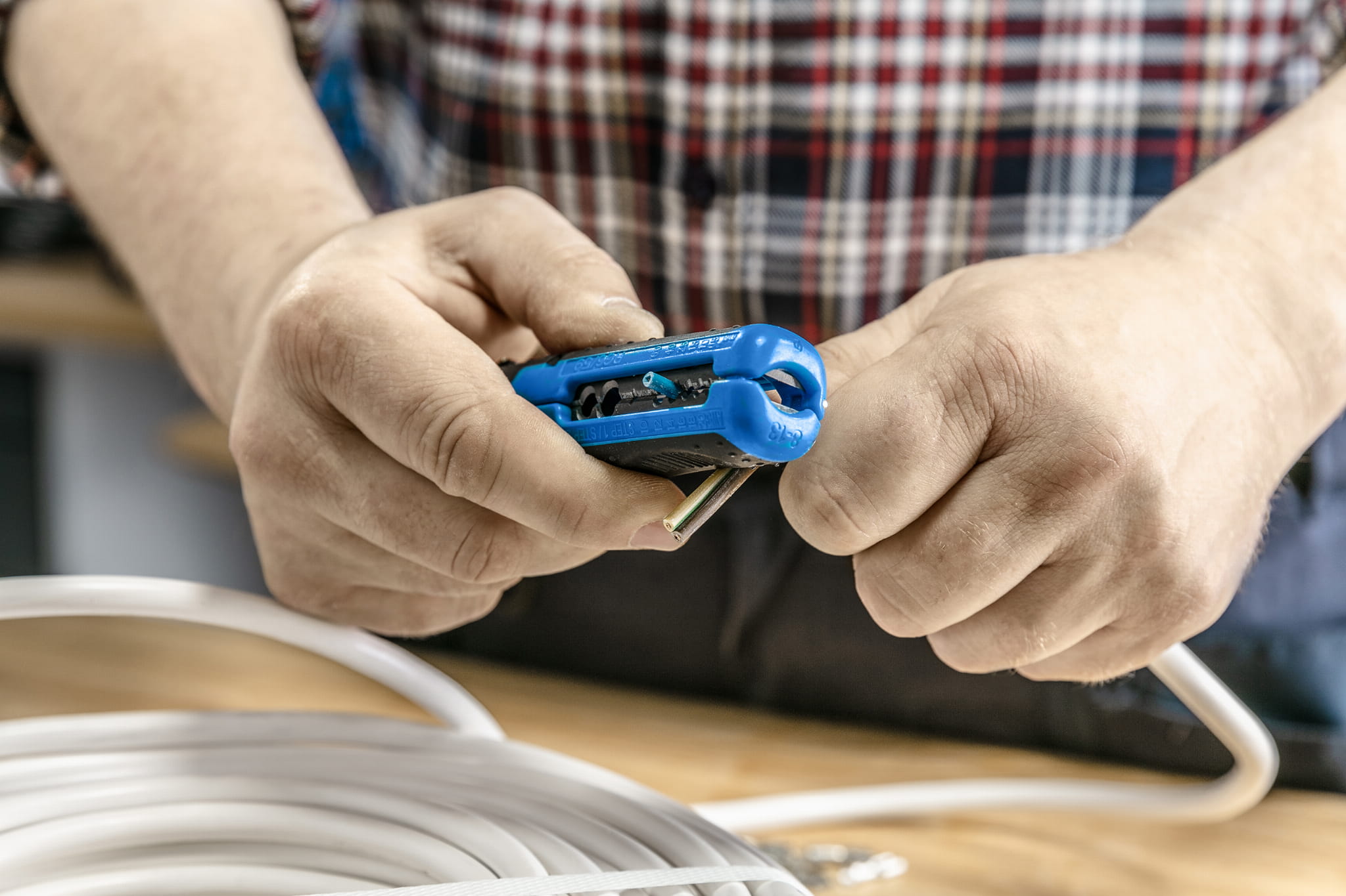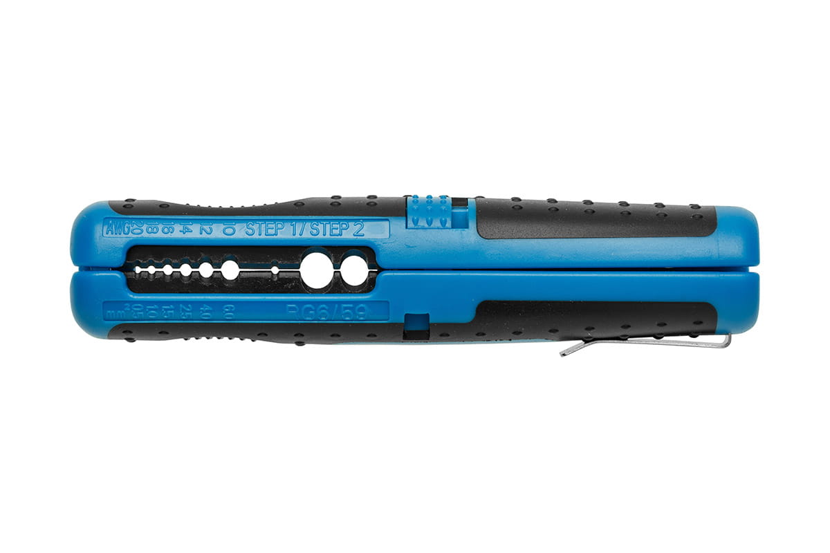 Podręczny i uniwersalny ściągacz izolacji z kabli koncentrycznych oraz przewodów okrągłych firmy Hoegert. Służy do ściągania izolacji z przewodów o grubości w zakresie od 0,5 do 6 mm² (AWG 20-10) oraz płaszcza kabli koncentrycznych w zakresie 8-13 mm². Ostrze ściągacza zostało wykonane z wysokogatunkowej stali stopowej SK5. Jest trwały, a jego korpus został wykonany z udaroodpornego tworzywa sztucznego i jest odporny na korozję. Ściągacz jest przeznaczony do ściągania izolacji kabli koncentrycznych RG6 i RG59. Dzięki dwukomponentowej oraz izolowanej rękojeści, chwyt oraz operowanie szczypcami staje się dużo wygodniejsze.