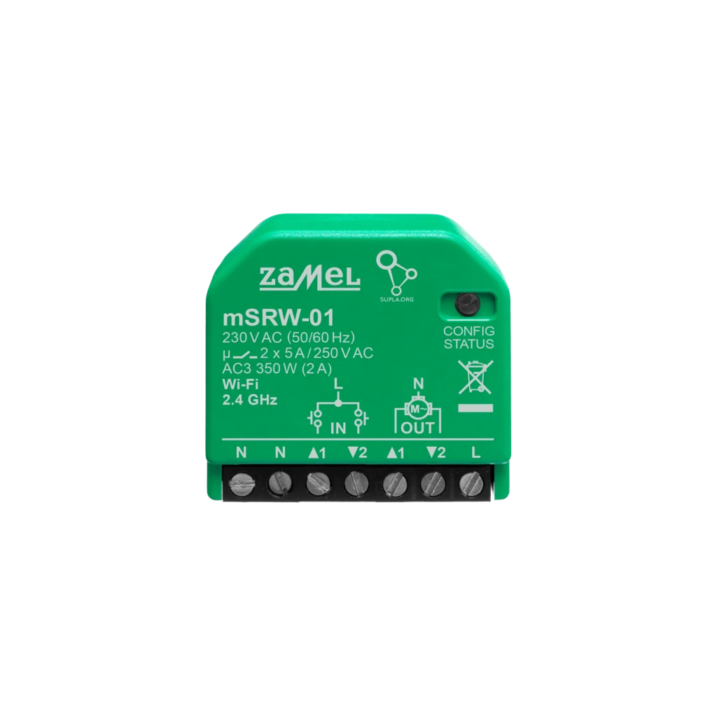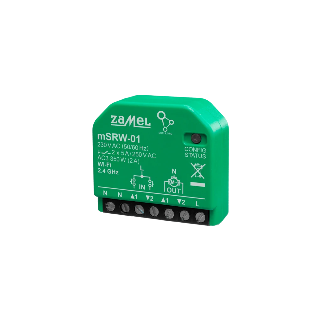 Sterownik rolet Wi-Fi w wersji mini firmy Zamel. Dopuszkowy sterownik rolet Wi-Fi w obudowie mini pozwala na sterowanie roletami za pomocą przycisków roletowych oraz sieci Wi-Fi. Sterownik rolet mSRW-01 to nowa generacja urządzeń stworzonych do szybkiego montażu i wygodnego zarządzania roletami. mSRW-01 cechuje kompaktowych rozmiarów obudowa, dzięki której montaż w puszkach czy obudowach sterowanych urządzeń jest łatwiejszy, a za sprawą nowego modułu auto-kalibracji również wyraźnie szybszy. Innym udogodnieniem czyniącym montaż mSRW-01 jeszcze łatwiejszym jest zastosowane dodatkowego złącza przewodu neutralnego. Sterownik roletowy zarządzany jest z poziomu środowiska Supla, w którym można tworzyć własne harmonogramy i na bieżąco kontrolować stopień otwarcia rolet. Współpracuje jednocześnie z łącznikami sterującymi monostabilnymi lub bistabilnymi.