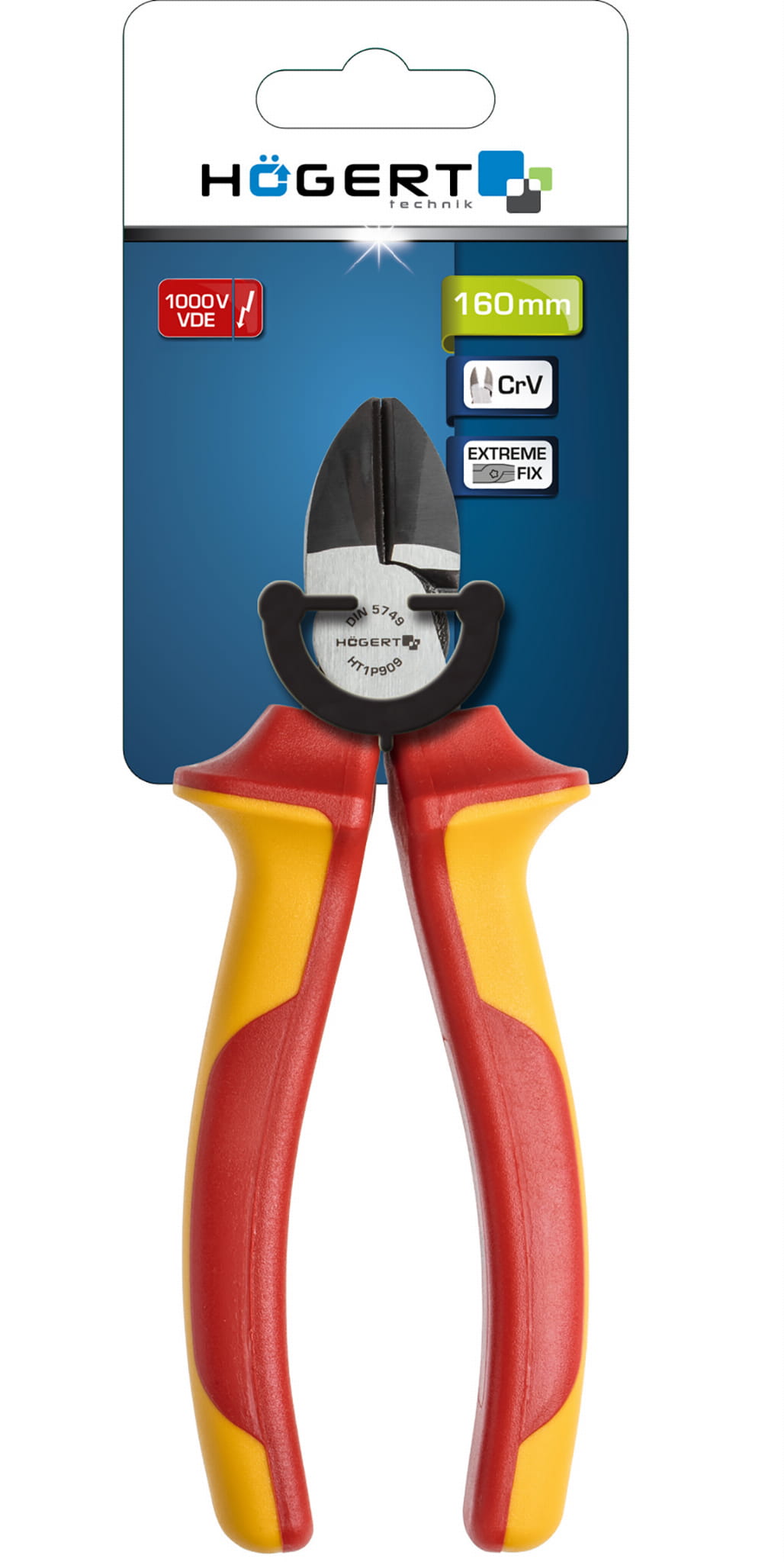 Szczypce boczne przeznaczone do cięcia przewodów i drutów firmy Hoegert. Atestowane do pracy pod napięciem zarówno przy średnich jak i dożych obciążeniach. Szczypce zostały wykonane z wysokogatunkowej stali stopowej chromowo-niklowej, która jest dodatkowo odporna na korozję. Dzięki dwukomponentowej oraz izolowanej rękojeści, chwyt oraz operowanie szczypcami staje się dużo wygodniejsze.