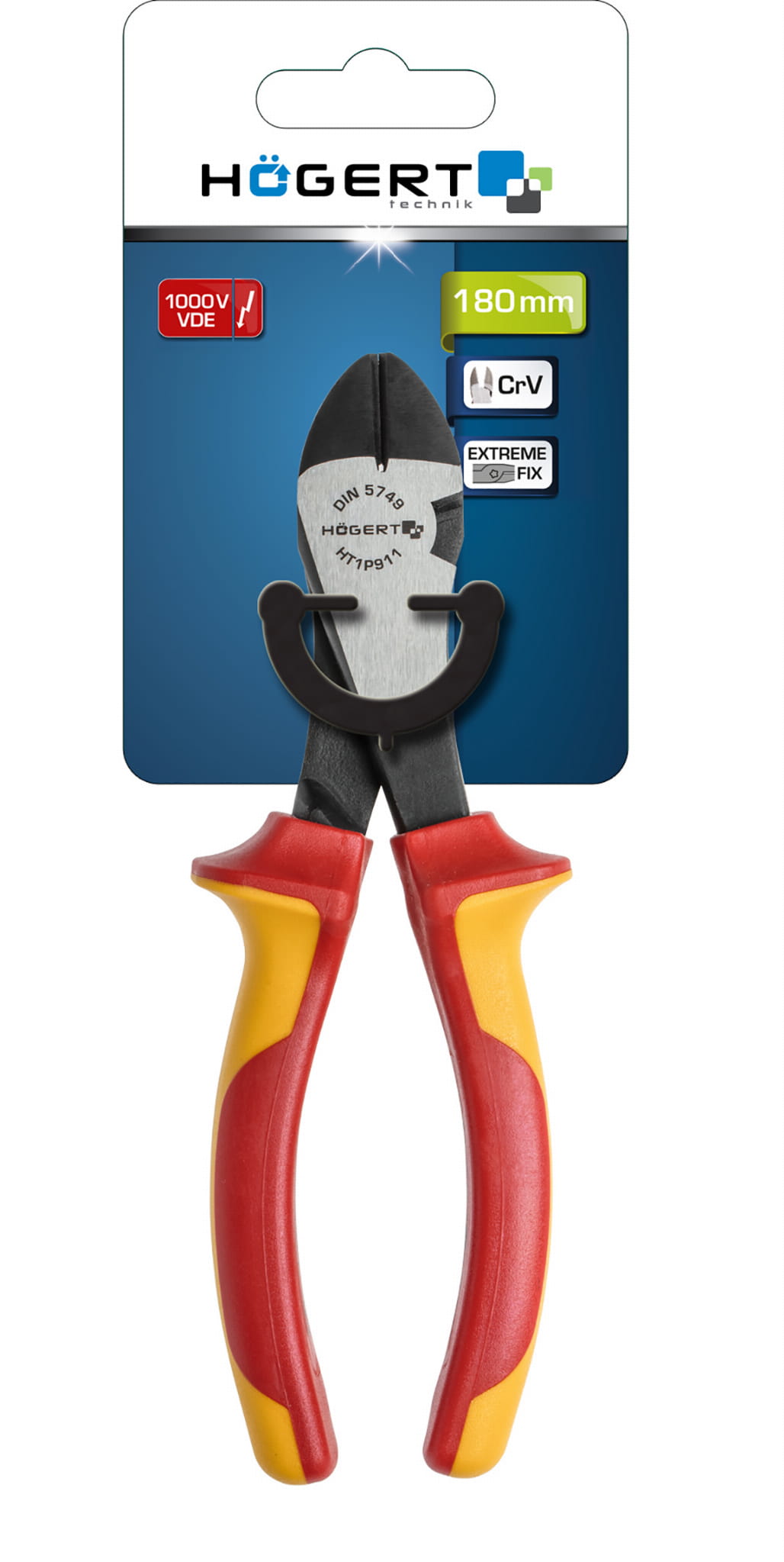 Szczypce boczne przeznaczone do cięcia przewodów i drutów firmy Hoegert. Atestowane do pracy pod napięciem zarówno przy średnich jak i dożych obciążeniach. Szczypce zostały wykonane z wysokogatunkowej stali stopowej chromowo-wanadowej, która jest dodatkowo odporna na odkształcenia. Dzięki dwukomponentowej oraz izolowanej rękojeści, chwyt oraz operowanie szczypcami staje się dużo wygodniejsze.