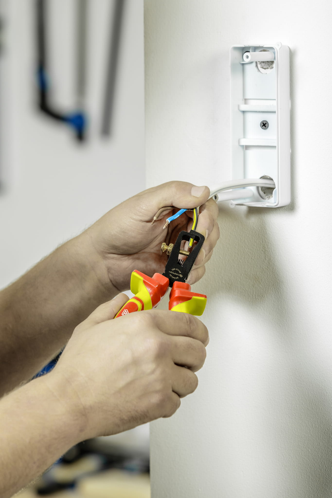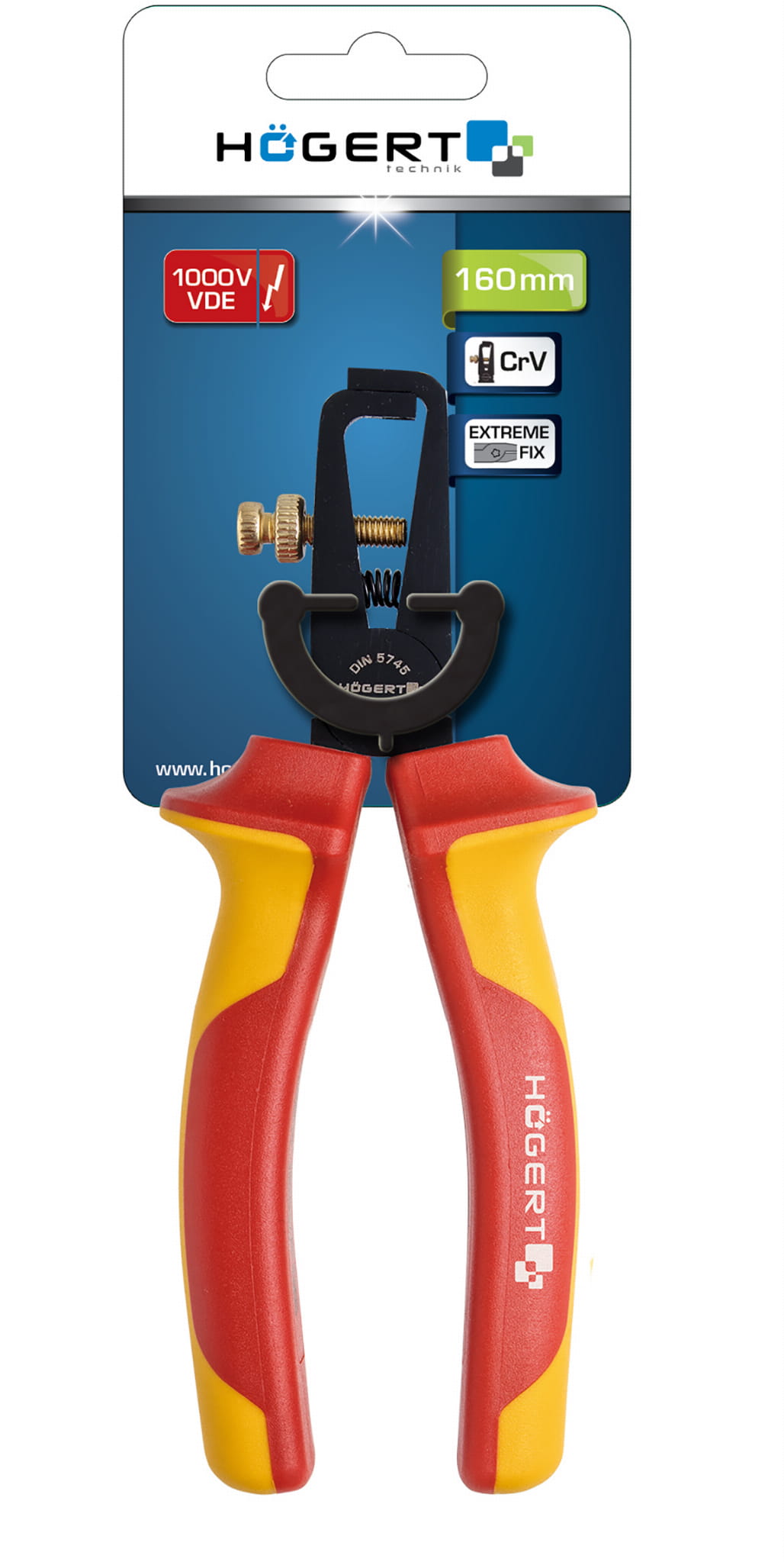 Wydłużone szczypce wygięte firmy Hoegert, służące do cięcia i kształtowania przewodów oraz drutów. Atestowane do pracy pod napięciem zarówno przy średnich jak i dożych obciążeniach. Szczypce zostały wykonane z wysokogatunkowej stali stopowej chromowo-wanadowej, która jest dodatkowo odporna na odkształcenia. Rozetowe łączenie zwiększa niezadowność i trwałość szczypiec. Dzięki dwukomponentowej oraz izolowanej rękojeści, chwyt oraz operowanie szczypcami staje się dużo wygodniejsze. Rękojeść szczypiec zabezpiecza dłoń przed kontaktem z korpusem.