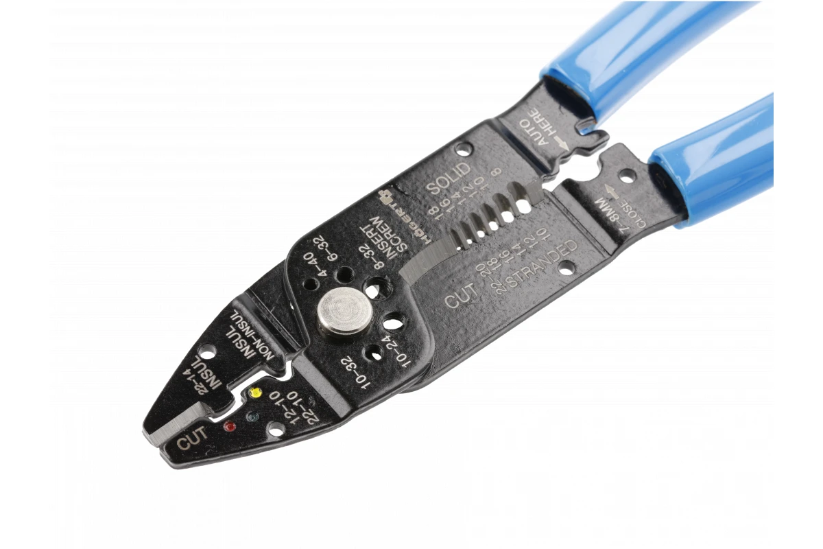Szczypce do ściągania izolacji HT1P220 firmy Hoegert. Szczypce przeznaczone do ściągania izolacji i cięcia przewodów z przewodów światłowodowych. Wykorzystywane przy pracach instalacyjnych i montażowych w serwisach elektronicznych, jak również w mechanice samochodowej czy telekomunikacji.