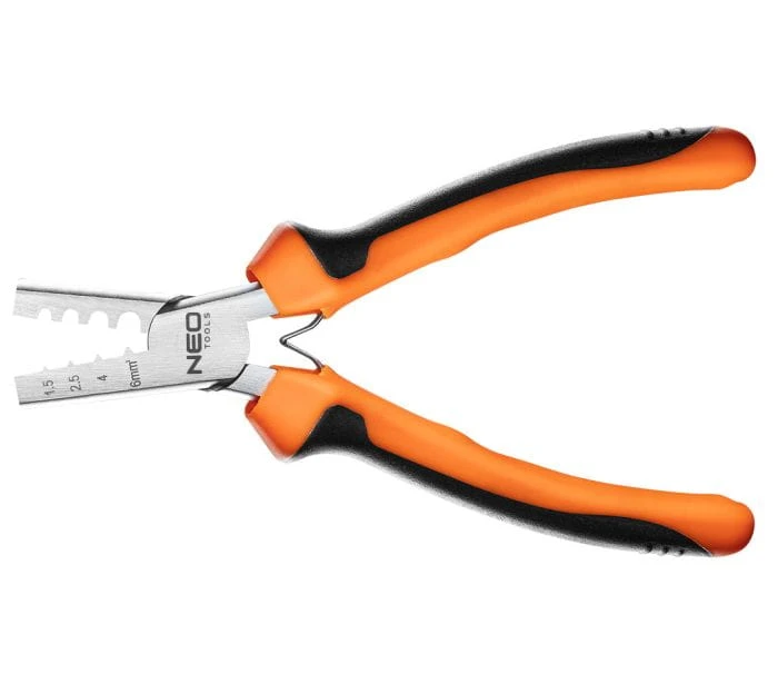 Szczypce do zaciskania końcówek NEO o długości 140 mm. Przeznaczone są do końcówek w zakresie 1,5 - 6 mm² (23-13 AWG). Szczęki wykonane z utwardzonej stali węglowej. Dwukomponentowy uchwyt z miękkiego, antypoślizgowego tworzywa PVC podnosi komfort pracy. Blaszki rozpierające ułatwią pracę. Szczypce spełnią wszelkie oczekiwania profesjonalistów.