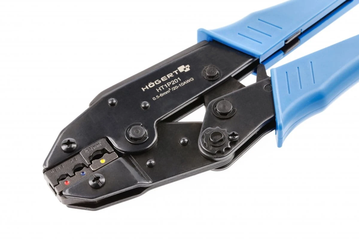 Szczypce do zaciskania końcówek izolowanych HT1P201 firmy Hoegert. Szczypce samozaciskowe do zaciskania końcówek izolowanych na przewodach elektrycznych. Wykorzystywane przy pracach instalacyjnych i montażowych w serwisach elektronicznych, jak również w mechanice samochodowej czy telekomunikacji.
