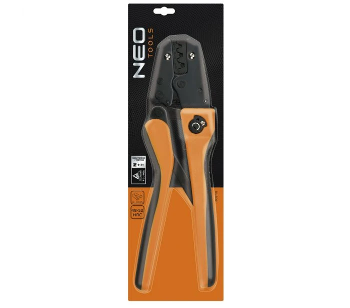 Szczypce do zaciskania końcówek nieizolowanych NEO o długości 250 mm marki Neo Tools. Przeznaczone do końcówek w zakresie 22-12 AWG. Twardość szczęk zaciskających wynosi 48-52 HRC. Uchwyt szczypiec pokryty jest wysokiej jakości tworzywem TPR, co podnosi komfort pracy. Szczypce spełnią wszelkie oczekiwania profesjonalistów.