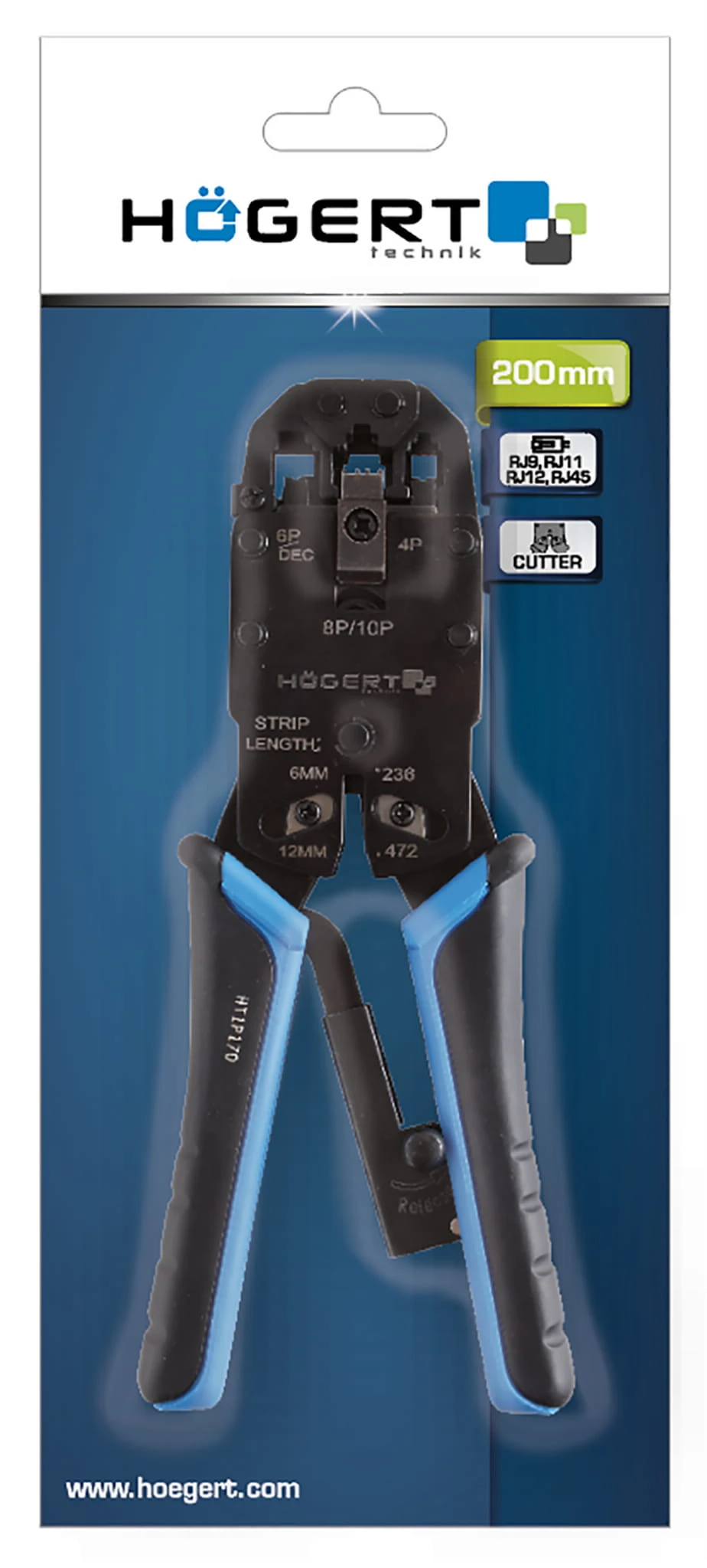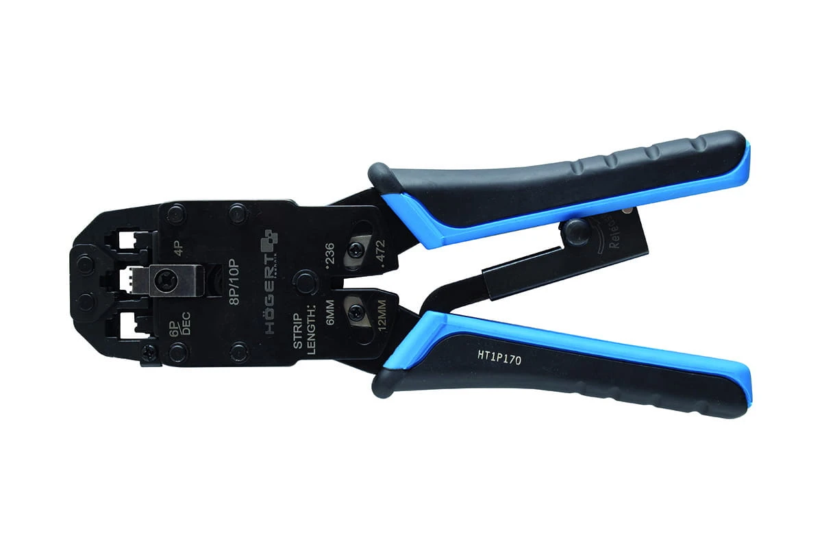Szczypce dźwigniowe firmy Hoegert do wtyczek typu RJ i telefonicznych. Wykorzystywane są przy pracach instalacyjnych. Szczypce zostały wykonane ze stali nierdzewnej i są odporne na odkształcenia oraz bardzo wytrzymałe. Naciskając blokadę siły do otwierania dźwigni, szczypce zaciskowe powodują montaż kabla. Profilowany uchwyt zapewnia pewny chwyt i precyzyjne prowadzenie.