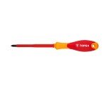 Wkrętak krzyżowy o długości grota 100 mm i końcówce PH2 marki Topex. Przeznaczony jest do prac pod napięciem do 1000 V. Wkrętak wykonany z wysokiej jakości stali chromowo-molibdenowej, izolowany. Ergonomiczny uchwyt z tworzywa sztucznego pokryty antypoślizgowym materiałem zapewnia komfort i bezpieczeństwo podczas pracy. Wkrętak doskonale nada się do majsterkowiczów.