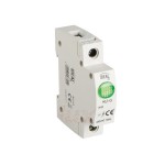 Wskaźnik obecności napięcia na szynę TH35 firmy Kanlux. Kontrolka świetlna LED służy do sygnalizowania stanu obwodów elektrycznych. Kontrolka jest w kolorze zielonym.