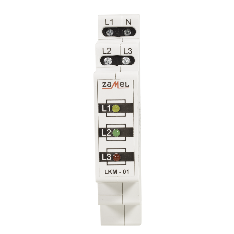 Wskaźnik zasilania firmy Zamel. Służy do sygnalizacji napięcia w sieci trójfazowej. Sygnalizacja ta odbywa się za pomocą trzech diod LED o podwyższonej emisji światła. Diody zostały oznaczone symbolami L1, L2 oraz L3. Diody LED dostępne są w czterech wersjach kolorystycznych: czerwony, zielony, żółty oraz mieszany. Wskaźnik zasilania może być zastosowany w sieci trójfazowej TN.