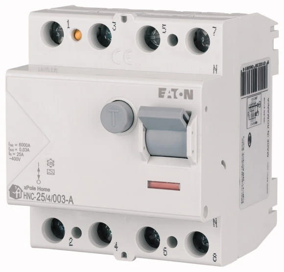 4-biegunowy wyłącznik różnicowoprądowy firmy Eaton. Wyłącznik różnicowoprądowy zapewnia bezpieczeństwo i optymalizuje pracę instalacji elektrycznej. Urządzenie chroni przed porażeniem prądem i zabezpiecza instalację przed przeciążeniami. Z pewnością znajdzie zastosowanie w budownictwie mieszkaniowym, wyłącznik firmy EATON to doskonały wybór. Urządzenie jest niezawodne oraz posiada pełną zgodność z odpowiednimi normami bezpieczeństwa.